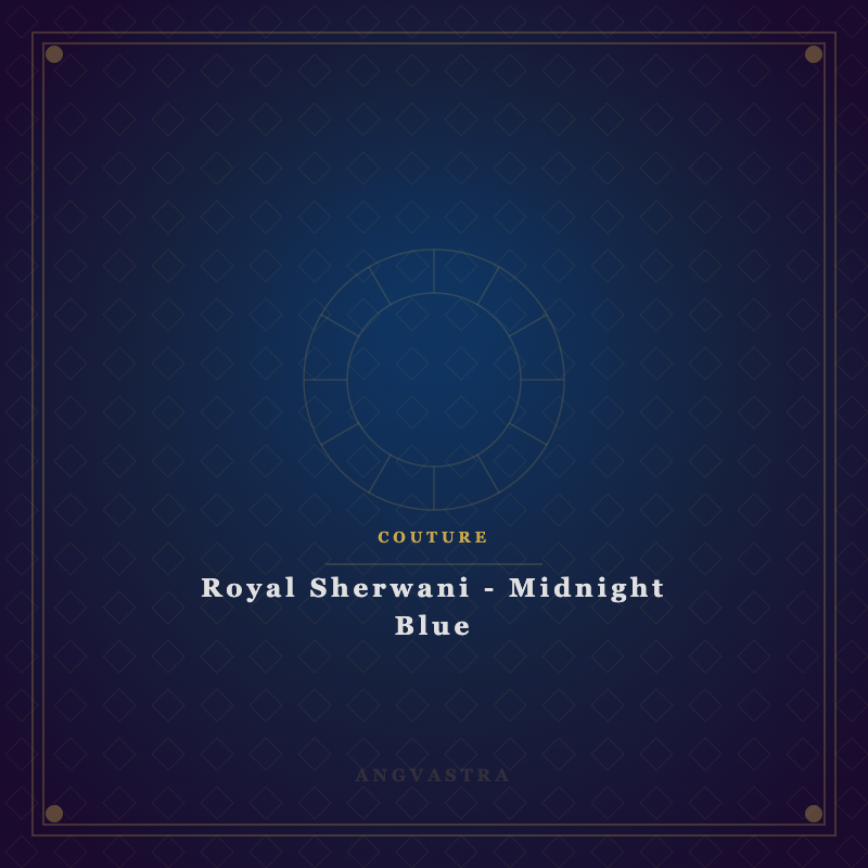 Regal midnight blue sherwani with silver thread embroidery for grooms.